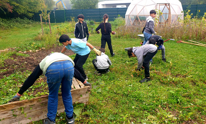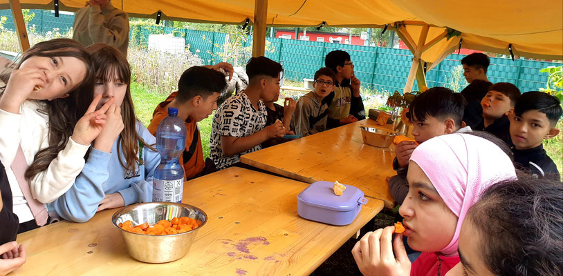 Die Klasse 5a hat diese Woche den "Weltacker " and der Nordbahntrasse besucht. Wir haben viel über Gemüse gelernt, Bohnen und Möhren geerntet und gewaschen. Probieren durften wir auch! Mit vereinten Kräften haben wir einen neuen Acker von Unkraut befreit und mit Harken und Spaten für neue Pflanzen vorbereitet.