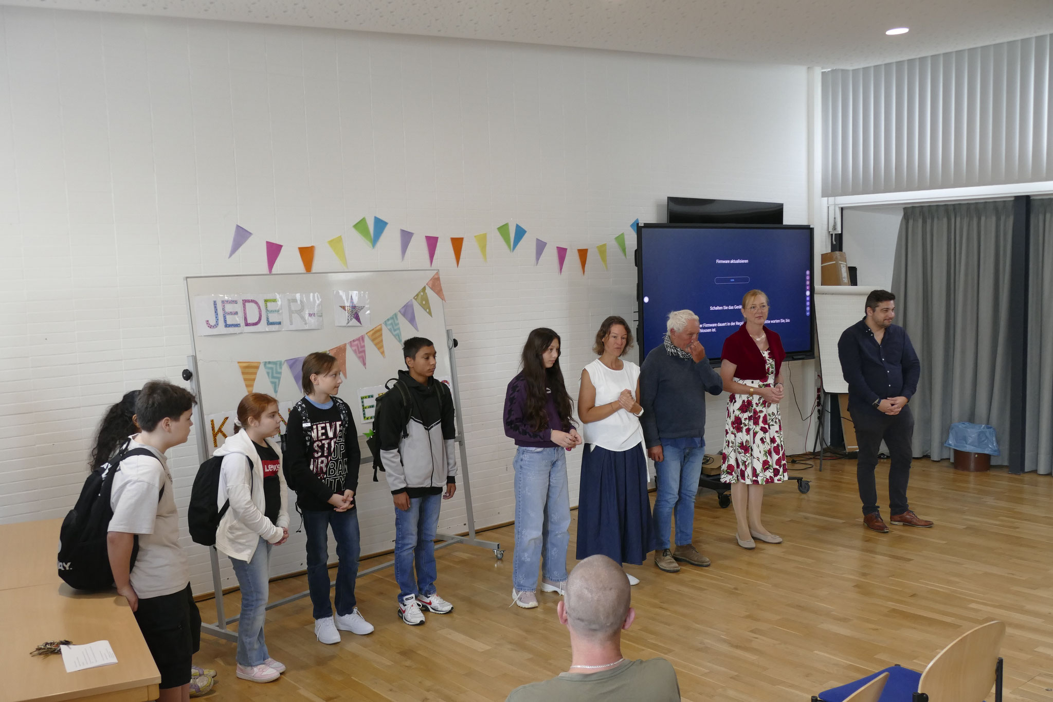 Zum Abschluss stellten die Schülerinnen und Schüler ihre Ergebnisse beim Elternnachmittag vor – mit Rollenspielen und selbst gestalteter Moderation. Viele Eltern und Lehrkräfte nahmen teil und machten die Woche zu einem vollen Erfolg!